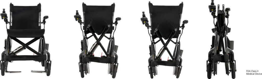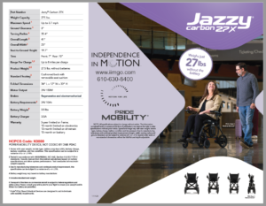 At first glance, the Jazzy® Carbon 27X may look like our other lightweight power wheelchairs but what stands out is its “X-frame” design, which allows this unit fold vertically, coming together in a compact bundle that is easy to lift, store, and transport.